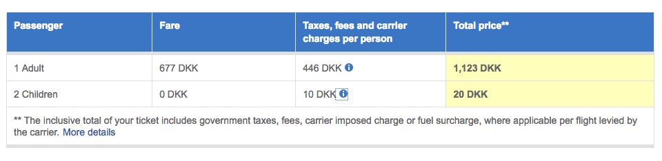 Prisen på de 10 kroner er udelukkende gebyr for at booke på flyselskabets hjemmeside. Selve flybilletten er gratis (se eksemplet herunder).