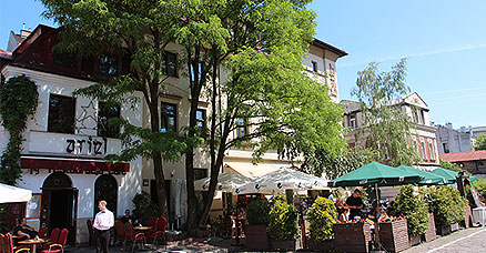 Kazimierz-distriktet er Krakows svar på Latinerkvarteret. Nyd en bid mad på en af Kosher restauranterne på bydelens centrale plads ul. Szeroka (se billedet under artikeln). Restaurant Rubinstein serverer en række jødiske specialiteter – bl.a. forretten "Jødisk kaviar" – men også mere gængse hovedretter som oksemørbrad og and. Restauranten var fødested for Helena Rubinstein – ja dén Helena Rubinstein med kosmetikken.