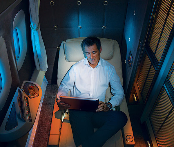 Emirates’ First Class-oplevelse har defineret det at rejse eksklusivt. De går forrest i at introducere innovative produkter som f.eks. private suiter, loungeområde og regulære luksusbadeværelser i flyet. Flyselskabets seneste førsteklasses oplevelse består af en helt lukket, privat suite inspireret af Mercedes-Benz – med gulv-til-loft skydedøre, elegante designfunktioner, bløde lædersæder, højteknologiske kontrolpaneler og stemningsskabende belysning.