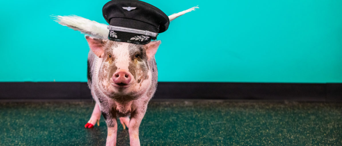 Formålet med den kælne gris er at overraske og glæde lufthavnens mange rejsende med sin vindende personlighed, charmerende kostumer og ikke mindst farvede negle.