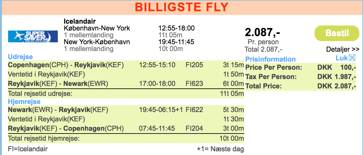 Specielt flybilletterne til New York er et virkeligt godt tilbud.