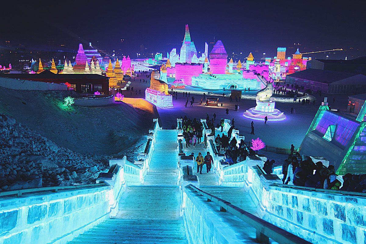 Man skaber verdens største isskulpturfestival, hvor man tager store isblokke fra floden og skaber et helt ubegribeligt univers af bygninger, statuer og tårne bygget i is. Og tilsætter lidt snedig kabelføring, så det hele bliver oplyst.
