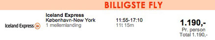 Det billige kan altid blive endnu billigere og lavprisselskabet Iceland Express sænker prisen fra Købehavn til New York til bare 1.190,- inkl. skatter og afgifter.