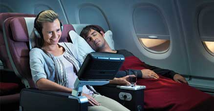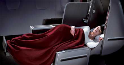 Når maskinen stopper i Singapore for at tanke op til resten af den lange tur, så er der stadig mange timer før de er fremme. Derfor er det ekstra skønt at kunne læne sig godt tilbage i sæderne på Qantas’ Airbus 380, og passagererne på den dyre First Class kan ikke bare læne sig tilbage, de kan ligge sig til rette i en 180 grader flad seng.