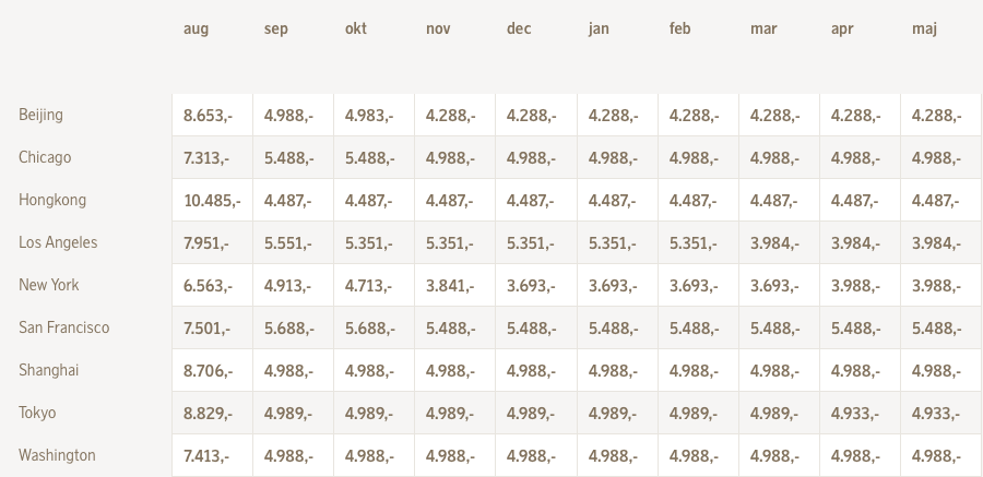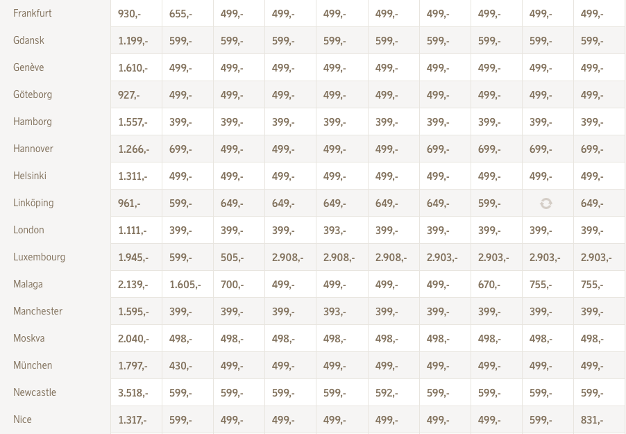 Alle disse priser inkluderer bagage og EuroBonus-point.