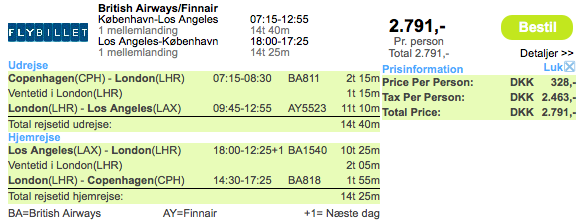 Bestil disse billige billetter ved at søge her på Viviro.com – så er du sikret den bedste prissammenligning og kan let se hvor det er billigst at købe dine flybilletter.