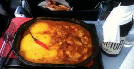Hønse-gullash ombord på AirBerlin. Kan købes til rimelige penge og er af ganske god kvalitet